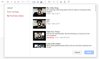 - A window should pop up with three options on the left side. Choose “My YouTube videos” and you should see all of your YouTube videos show up. Your newly created video blog should be the first so select it and hit “Select”.